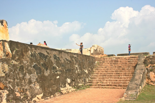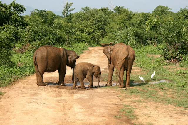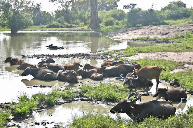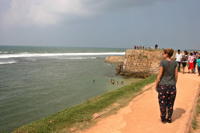 Dias 11 a 15: Safari no Udalawawe, National Park, Whale Watching, Mirissa e Galle. Após quase duas semanas a viajar, de transportes públicos, estávamos genuinamente cansados. Por isso, e porque já temos experiência de outras viagens, o nosso roteiro foi concebido de forma a que  pudéssemos passar os últimos dias a descansar nas fabulosas praias do Indico. Mas não sem, antes, fazermos aquela que, para mim, foi a experiência top de toda a viagem: O Safari em Udalawawe National Park, o qual é considerado o melhor do mundo para ver elefantes,  superando os africanos. Felizmente, tivemos a sorte de ficar numa Guest House maravilhosa, onde nos arranjaram um guia excepcional. O preço do safari com o jipe fica em menos de trinta e cinco euros por pessoa, o que é realmente barato, até porque a experiência foi excepcional. Vimos elefantes, búfalos, coiotes, pássaros de mil e uma cores, águias, crocodilos, tartarugas, pavões, pelicanos, papagaios. Os níveis de adrenalina dispararam ao máximo, quando um elefante macho, adulto, investiu em direcção ao nosso carro e tivemos que fugir, o que originou mais uma história para contar. A chegada a Mirissa deu-se após quatro longas horas de autocarro público. Conhecida por possuir as mais belas praias “desertas” do Sri Lanka, a nossa expectativa era enorme, e foi amplamente superada. Areais brancos a perder de vista, invadidos pela selva, ondas maravilhosas para o surf, que fizeram as delícias do meu Amor, corais, peixes de mil e uma cores, agua cristalina de um azul “Maldivas”. Tivemos a sensação de ter encontrado o paraíso perdido. Dezembro e Janeiro, são os melhores meses do ano para a observação de baleias azuis nesta parte da ilha, pelo que não quisemos perder a oportunidade, e, apesar de a viagem de barco ter a duração de seis horas, valeu a pena, até porque vimos seis destes lindíssimos gigantes marinhos. De cortar a respiração, meus 5.75 leitores, e, posso dizer-vos, que o aspecto mais impressionante, é o barulho do esguicho da baleia. Parecia que estávamos dentro do filme da “Moby Dick”. Inesquecível. O Sri Lanka é um país com tantos encantos, tantas boas experiência, que, para o final, reservou-nos uma despedida em grande: A cidade de Galle. Fundada pelos portugueses no século XVI, foi a antiga capital da ilha de Ceilão. Ocupada pelos holandeses no século XVII, a sua arquitectura fortificada, reflecte este vincado legado colonial, o que a transforma num sítio de uma beleza única e excepcional. Fiquei absolutamente encantada com as ruas, as pessoas, os cheiros, a comida. Foi um “Até Já” em grande a esta verdadeira pérola da Ásia, que vai ficar, para sempre, no coração, como uma das viagens mais felizes da minha vida, feita ao lado daquele que é, não só