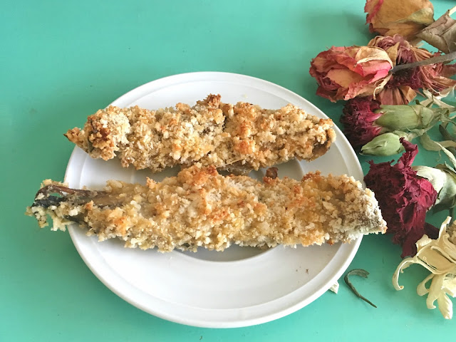 Adoro combinações surpreendentes. Por isso, quando um colega de trabalho, me contou que a mulher costumava panar frango, de forma diferente, e super apetitosa, com pão ralado japonês, que comprava no Aldi, não resisti em experimentar. Realmente, é uma delícia. A carne fica super estaladiça e crocante como se estivéssemos num restaurante japonês à séria. E, a melhor parte, é o preço, já que custa menos de um euro. Infelizmente, não vendem sempre. Apenas se encontra disponível esporadicamente, durante as campanhas dos produtos asiáticos, pelo que me adiantei e comprei dois pacotes, que vão durar imenso tempo. Também já testei com filetes de cavala, e posso dizer-vos que ficaram uma maravilha, com um aspecto super apetitoso, como podem ver na foto. Se ainda não conhecem, experimentem, meus 5.75 leitores, porque vão amar. Palavra de #lobo.