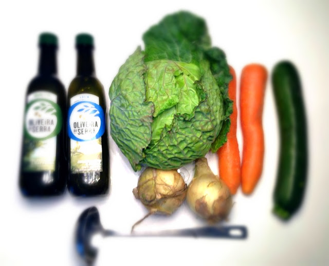 Já que a minha cara-metade não é grande fã de legumes, e só os come na sopa, tento diversificar ao máximo, para tornar a experiência o mais agradável, [ou menos penosa], possível. Como nos deram, no fim de semana, repolho, abóbora, cebolas, cenouras e curgetes biológicas, optei por adicionar uma batata-doce e concretizar esta deliciosa sopinha. De facto, o sabor e a qualidade dos legumes, valem por si só, pelo que ficou maravilhosa, para além de ser super saudável. Experimentem porque vão adorar. E não demora mais do que vinte minutos a cozinhar.